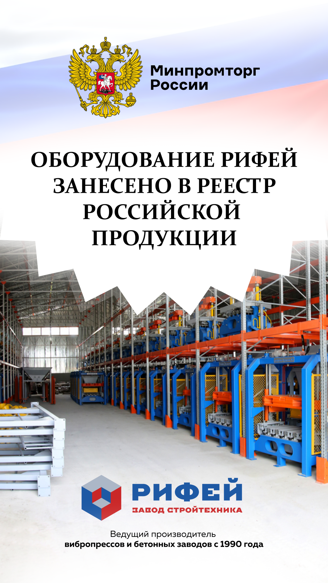 Оборудование марки Рифей от Завод Стройтехника включено в реестр Минпромторга